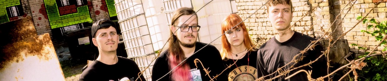 4 young edgy individuals playing alternative rock music while suppressing their hate for each other