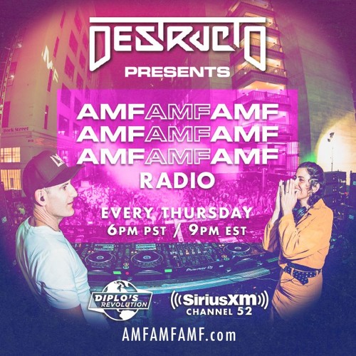 Tune in Every Thursday 6 pm PST / 9 pm EST on Sirius XM channel 52 as@destructoamf hosts AMFAMFAMF Radio
