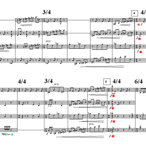 One approach to the rhythmic complexity of the piece is, of course, to simplify. Practice first as a purely percussion piece, without the instruments, singing / drumming the movements without pitch and dynamics. If you c…