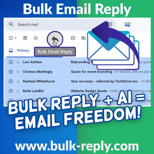 Clear inbox backlog faster without losing the personal touch. Bulk Email Reply by cloudHQ lets you reply to multiple emails at once in Gmail with helpful, customized messages.