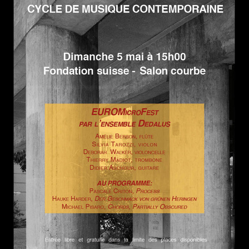 Process in Process (2013) / Pascale Criton Dedalus : Silvia Tarozzi, violon - Amélie Berson, flûte - Deborah Walker, violoncelle - Thierry Madiot, trombone - Didier Aschour, guitareLive @ EuroMicroFest, Pavillon Suisse…