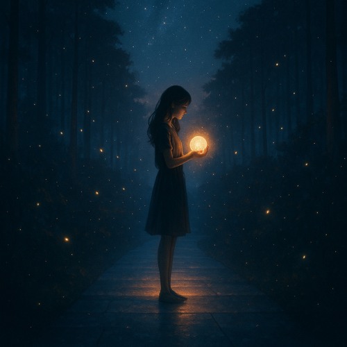 音色主體是 夢幻宇宙合成器+電影感空靈 Pad,混入輕柔的 glitch dust,再用 深沉但不刺的 reverb bass 把整首歌托在夜色裡。人聲是貼耳的 女聲呢喃 close…