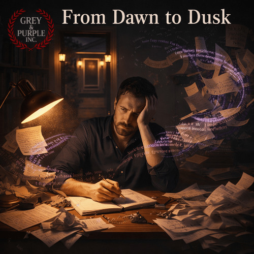 The text and song "From Dawn to Dusk" is about the thought process prior to the writing process in a writers universe. From morning to evening, brewing a cup of coffee and starting on a project, it may be a text to an ar…