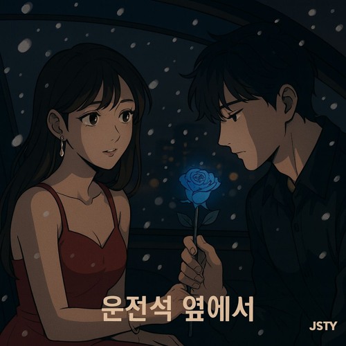 차창 너머로 마주한 순간.붉은 드레스의 따뜻함과파란 장미의 차가운 빛이 겹쳐지고—