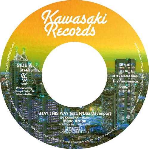 SIDE A: STAY THIS WAY feat. N’Dea Davenport (DJ KAWASAKI 45Edit)/ Mano Arriba - Vinyl 7’ from KAWASAKI RECORDS, HMV Record Shop (HR7S153). It will be released in August 28th, 2019!2019年8月28日にKAWASAKI RECORDS第3弾シングルを7’Vi…