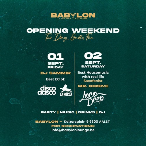 For the opening weekend of the new Babylon Lounge Club at Aalst we got invited to play an all nighter on Saturday September 2nd. We also brought along Mr. Noisive to play live sax on our house beats! It was a very fun ni…