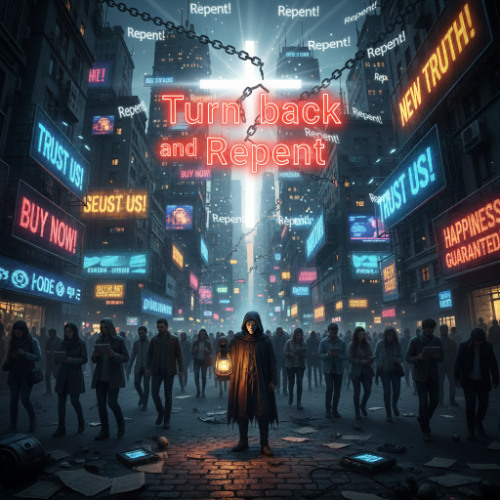 The song "Turn back and repent!" (based on Matthew 3:1-12) is a call to repentance and preparation for the return of Jesus. It describes John the Baptist urging people to repent and warns against false teachings and reli…