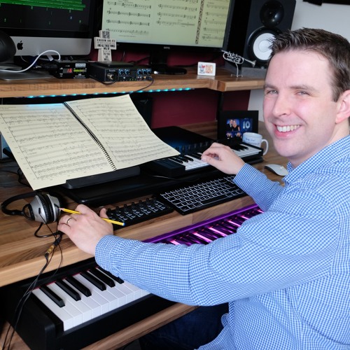 Uptempo jazz trio mickey-mousing (fourth wall breaking) to a comedy routine on a pitch for an advert.