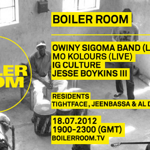 Boiler Room w/ Owiny Sigoma (Live), Mo Kolours (Live), Jesse Boykins III (Live), IG Culture & Residents: Tightface, JeenBassa & Al Dobson Jr.