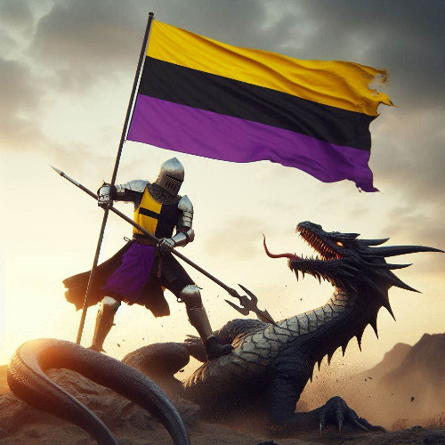Hey,How does a non-binary knight slay a dragon?