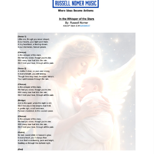 This song was written to console a dear friend when his granddaughter was stillborn. It is my hope and prayer it helps to ease the pain and sorrow of anyone facing similar circumstances. Thank you for listening.