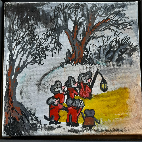 In Kenneth Grahame's classic children's novel 'The Wind in the Willows', a group of field mice sing a carol to Mole and Rat. The singing cheers Mole and Rat, who provide a feast for the young field mice. The words of the…