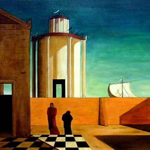 PaintingGiorgio de Chirico - The Enigma of the Arrival and the Afternoon(1912)