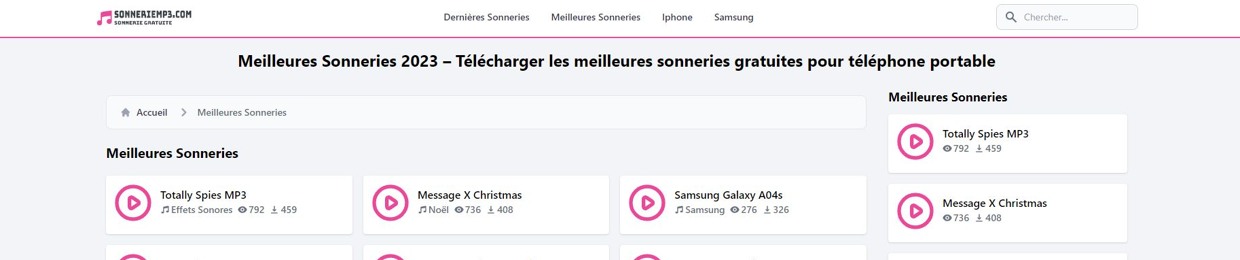 SonnerieMp3.com est un site spécialisé dans la fourniture de sonneries pour téléphones. Ici, vous pouvez télécharger une liste de sonnerie gratuite : Sonnerie Samsung, Sonnerie iPhone, Sonne…