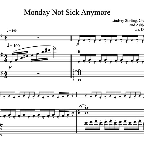 This is a sample of the piano accompaniment that comes with the "Monday Not Sick Anymore" violin solo sheet music available here: lindseystirlingsheetmusic.com