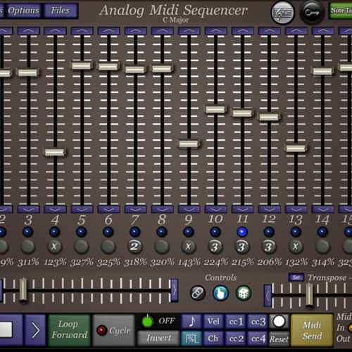 The new 1.5 release of midiSequencer is great. This uses the slow tempo available to drive the arp in microTera. The rests and tuples, 2-5, available in the sequencer open up the music.VirSyn's Reverb is also used.