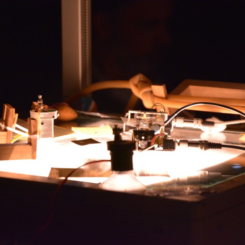 experimenting with bi-core oscillators and their couplings. one slow running oscillators is modulating two faster oscillators that drive 2 motors hitting on rubber strings.