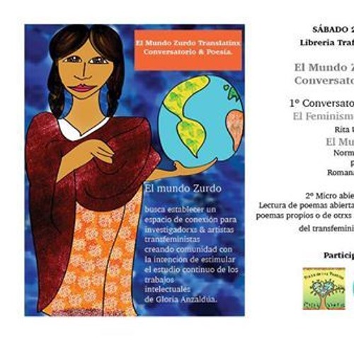 Jornada «El Mundo Zurdo Translatinx» Conversatorio & Poesía.Sábado, 28. Mayo 2016 - 18:00 - 21:00El mundo Zurdo busca establecer un espacio de conexión para investigadorxs & artistas transfeministas creando comunidad …