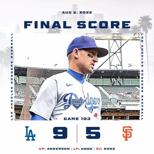 #PostGameReport @Los Angeles Dodgers vs @San Francisco Giants 08/02/22 LIVE from Oracle Park in San FranciscoLAD wins 9-5 improving to 70-33SP/WP: #TylerAnderson (12-1/ 2.89 ERA)