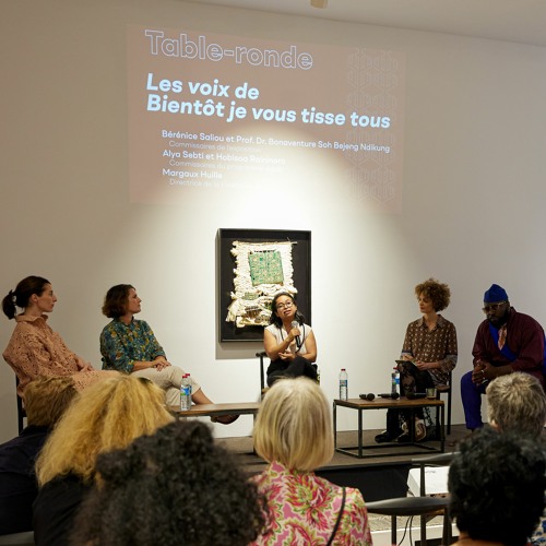 Le programme de discussion autour de l'exposition inaugurale a démarré avec une table ronde intitulée "Les voix de Bientôt je vous tisse tous" avec la participation de Margaux Huille (Directrice de la Fondation H), Béré…