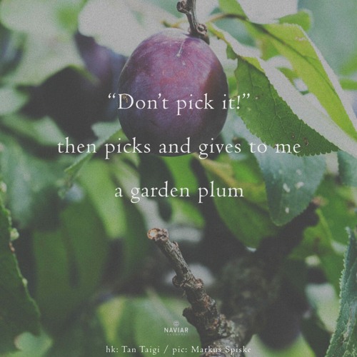 “Don’t pick it!” then picks and gives to me a garden plum