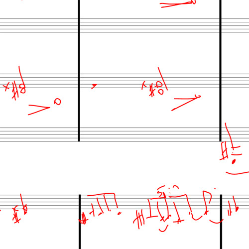 for viola, electro guitar, electric piano, percussion and cello performed by KNM ensemble, 2015